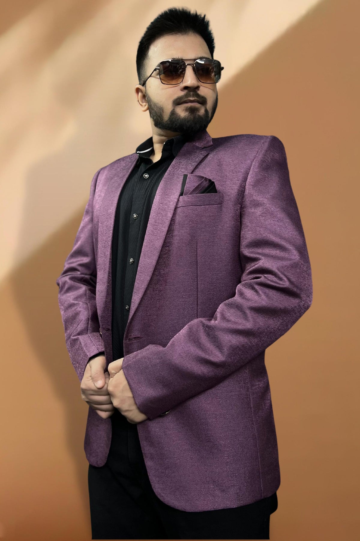 Purple Color Jacquard Fabric Party Wear Readymade Men Blazer