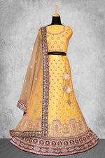 Radiant Embroidered Work On Yellow Color Art Silk Fabric Lehenga