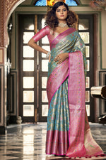 Organza Fabric Festive Style Awesome Saree In Sky Blue Color