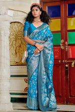 Jacquard Work On Sky Blue Color Awesome Banarasi Silk Saree
