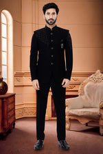 Appealing Black Rayon Readymade Jodhpuri Suit