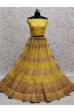Yellow Color Wedding Wear Splendid Lehenga In Net Fabric