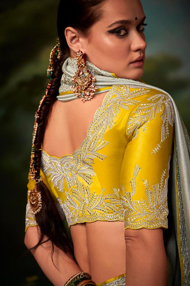 Grey Color Art Silk Fabric Divine Saree