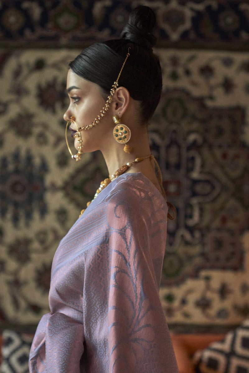 Grey Color Pleasant Art Silk Weaving Designs Saree