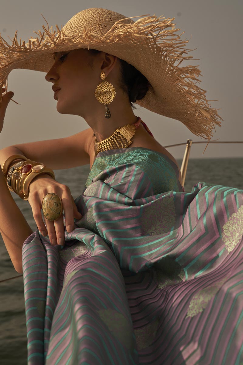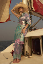 Stunning Weaving Work Wedding Wear Saree In Lavender Color Satin Fabric