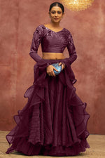Wine Riveting Lycra Fabric Wedding Wear Lehenga Choli