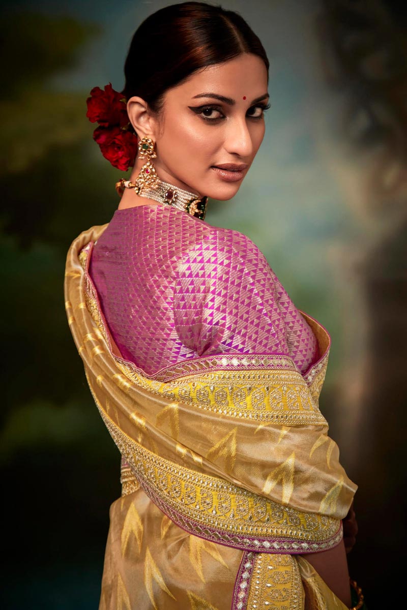 Beauteous Yellow Color Fancy Work Saree In Art Silk Fabric