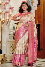 Alluring Jacquard Work On Banarasi Silk Saree In Cream Color