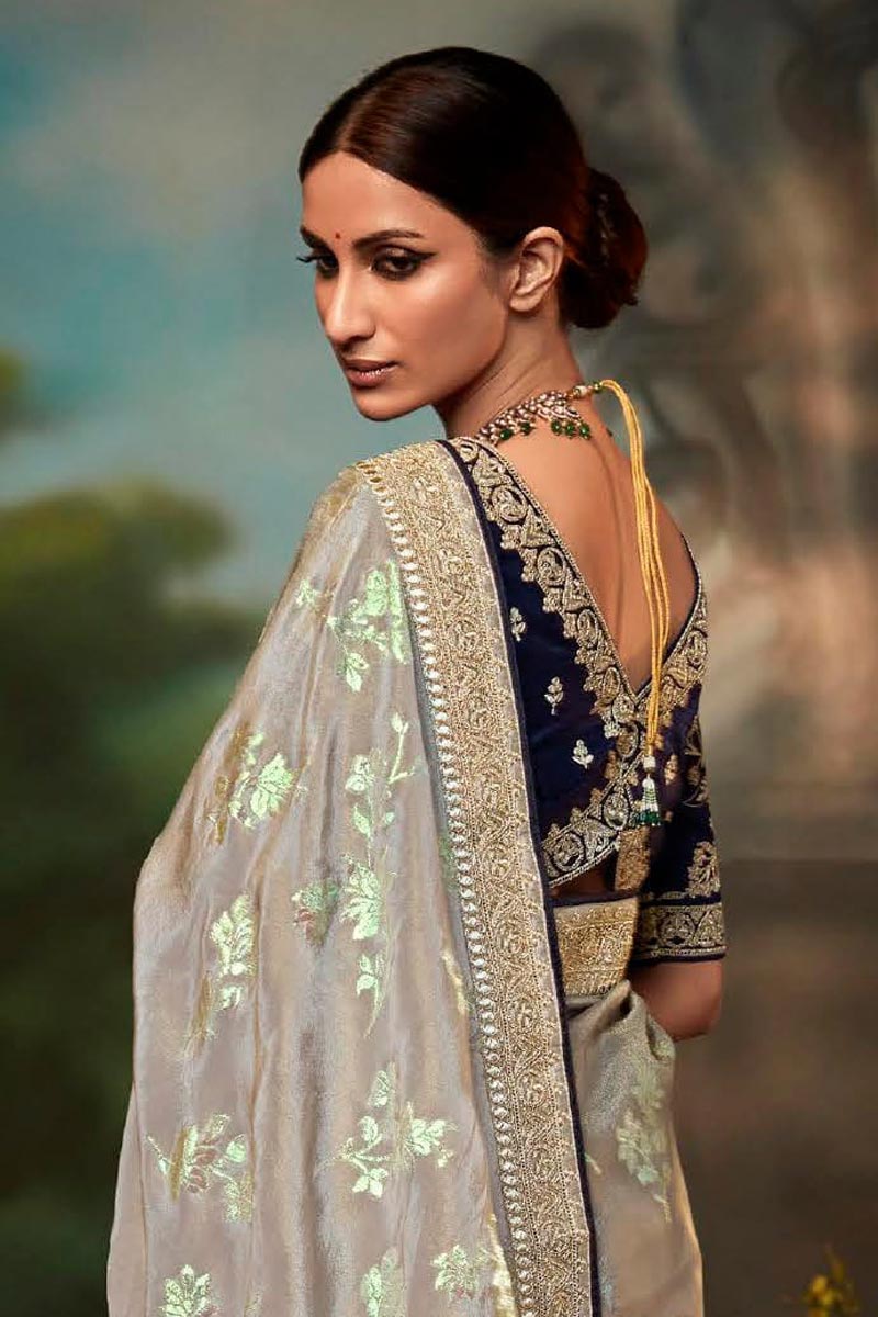 Art Silk Fabric Superior Fancy Work Saree In Cream Color