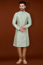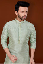 Jacquard Fabric Bewitching Kurta Pyjama For Men In Sea Green Color