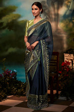 Navy Blue Color Art Silk Fabric Superior Fancy Work Saree
